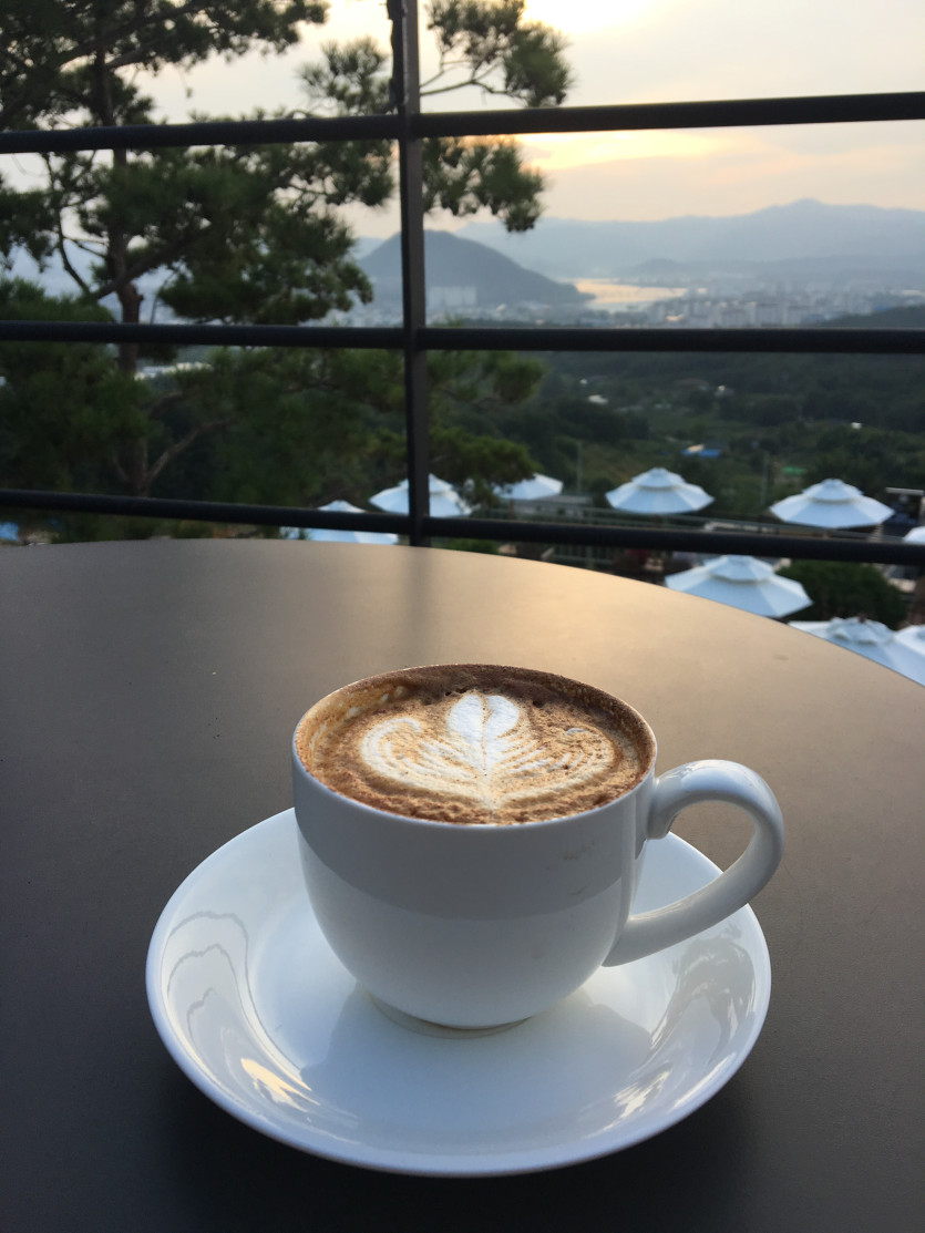타이밍 좋게 노을보며 커피를 마셨어요.