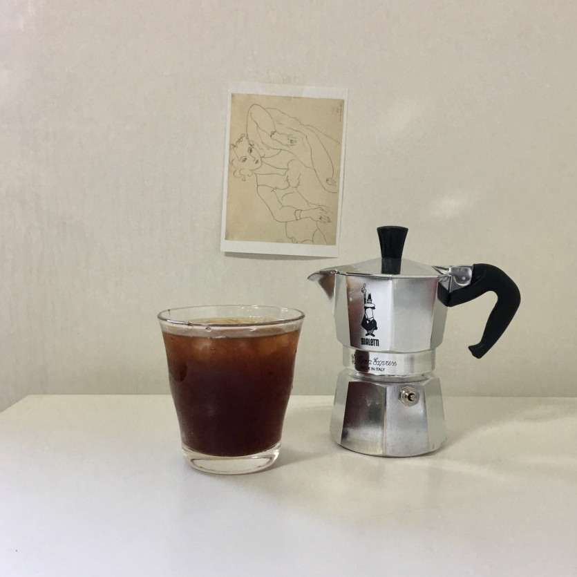 모카포트 아래쪽에 원두를 넣고 끓여주면 에스프레소가 추출됩니당 ㅎㅎ 5분안에 카페처럼 커피를 마실수 있어요.커피머신을 사기 부담스러운 분들에게 추천해요. 전 작은거라 투샷용예요.