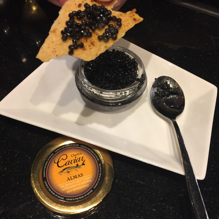 짭조름하고 입안에 터지는 맛이 매력적인 알마스 캐비어! 여러 요리에 조금씩얹어서 사용되지만 이렇게 크래커하나로만 먹어도 맛있다. 가격은 비싸지만 한번쯤 먹어본다면 알마스캐비어추천!
