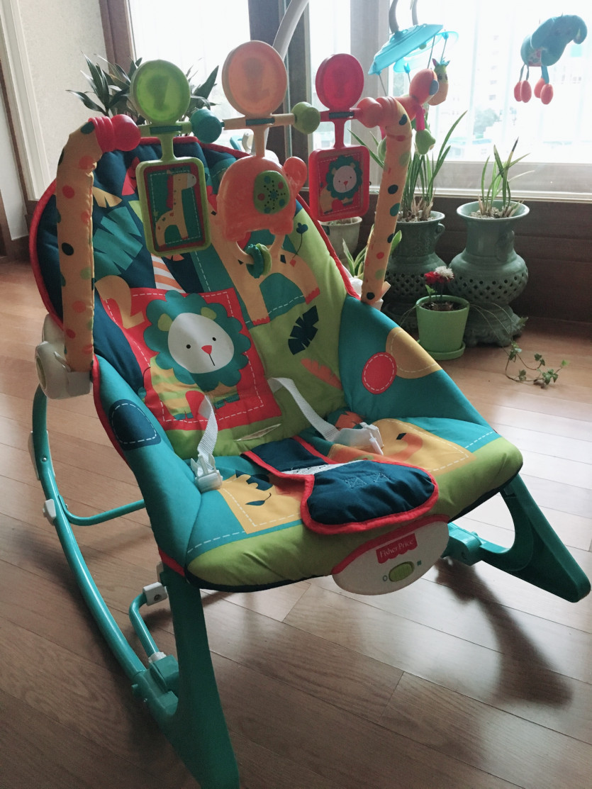 국민바운서라 불릴만큼 가성비가 좋은 바운서. 아이가 움직이면 의자가 흔들흔들! 눈 앞에 동물그림에 한눈 팔려있을때 눕기도하고 집안일도 해요. 비싸지 않아 부담도 적어요^^