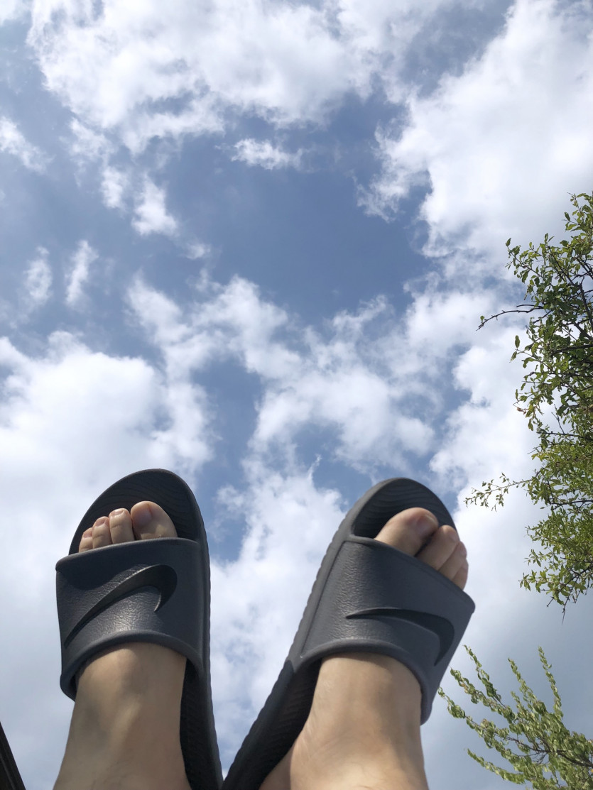 저 지금 나이키 카와 샤워 슬라이드 신고 하늘 좀 달리고 올게요!