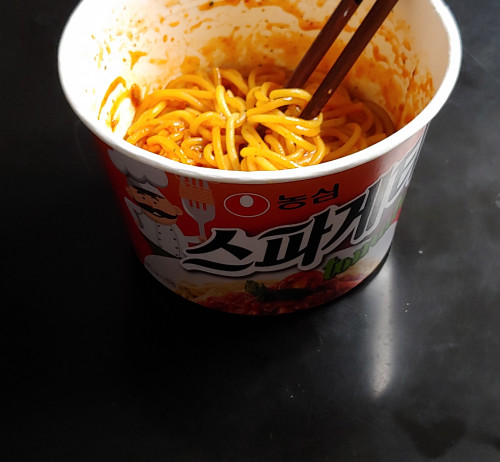 끓는 물 5분에 이런 면발을 만들어냈다는 것만으로 일단 합격. 분말 소스 맛은 불만.
