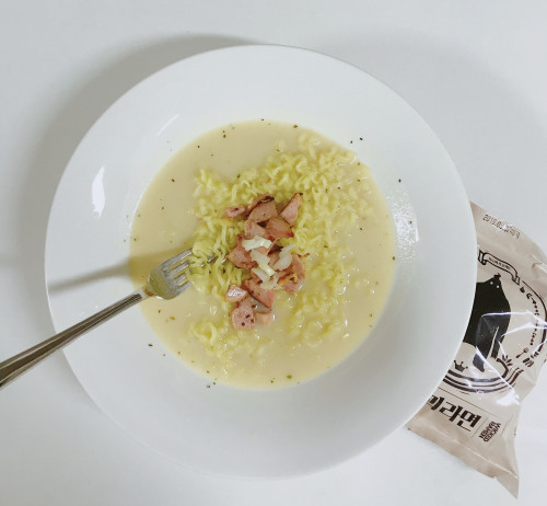특이하고 유니크해서 샀다. 첨엔 먹을만하다 반정도 넘어가면 맛이 약간 따로 노는 느낌. 그래도 먹을만은 한데 ..라면의 생명인 면이 진짜 요괴다..꼬들라면 끓여놓고 찬물 확부은느낌