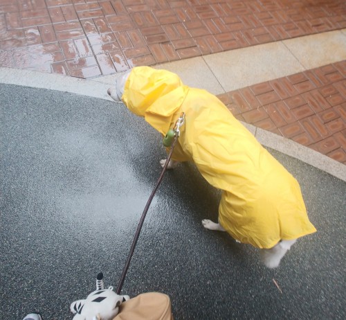 장마철을 맞아 급하게 쿠팡에서 18천원 주고 샀어요. 소재가 얇고 가벼워서 크게 불편해하지 않는거 같더라고요. 물론 좀 덥기야 하겠지만, 실외 배변하는 개들한테 장마철 필수템인듯~